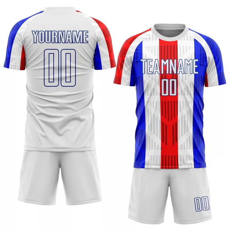 Kajaba iku, seragam kasebut nduweni desain warna sing kontras, sing nambah daya tarik visual. Manset lan panel sisih sing kontras nggawe klambi bal-balan lan celana pendek iki katon, nuwuhake rasa bangga lan individualitas ing antarane anggota tim. Kanthi macem-macem kombinasi warna sing kasedhiya, tim bisa ngatur seragam kanthi gampang kanggo nggambarake identitas sing unik.